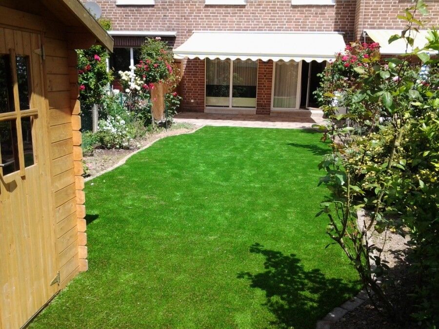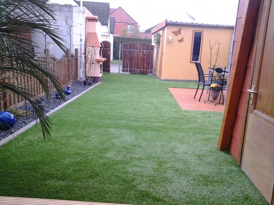 Kunstrasen wird im Garten immer häufiger als Alternative zum klassischen Naturrasen gewählt. Kunstrasen sieht immer perfekt aus, bedarf nur wenig Pflege und ist sowohl von der Optik wie auch der Haptik kaum von natürlichem Rasen zu unterscheiden! Überzeugen Sie sich selbst - die folgenden Bilder zeigen unseren Kunstrasen im Garten bei unseren Kunden.