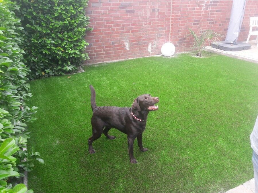Heute haben wir wieder Bilder von zwei Kunstrasen-Verlegungen: Die ersten beiden Bilder zeigen frisch auf einer Dachterrasse verlegten Kunstrasen - der wird hier ja immer beliebter als Bodenbelag. Wie man auf den Bildern sehen kann, schafft Kunstrasen auf Dachterrassen eine wunderbare Atmosphäre und die Dachterrasse wird so regelrecht zum Gartenersatz. Die beiden anderen Bilder zeigen Kunstrasen im Garten und vor allen Dingen, dass Haustiere Kunstrasen sofort annehmen und sich darauf wohlfühlen. Die Optik und Haptik unterscheidet sich von Naturrasen nur minimal, so dass Hunde, Katzen und alle anderen Haustiere den Unterschied kaum bemerken!