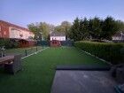 Juni 2020: Vorher-Nachher-Bilder von einer Kunstrasen-Fläche im Garten