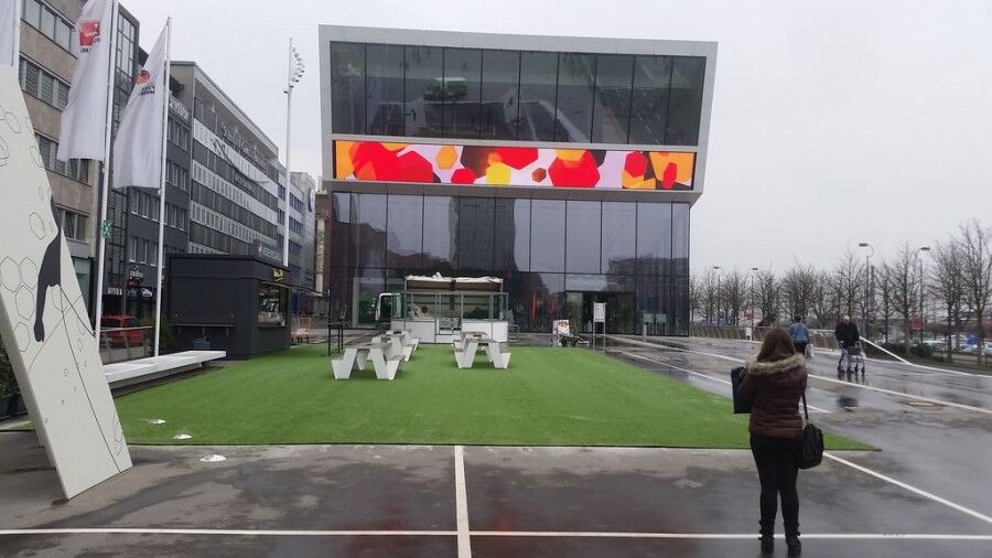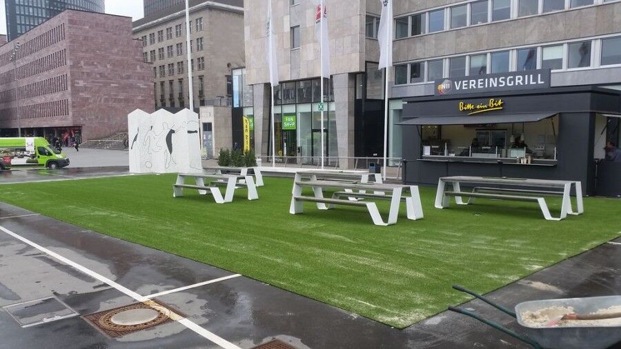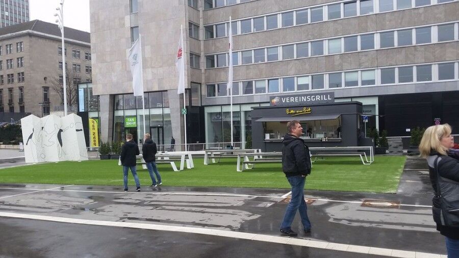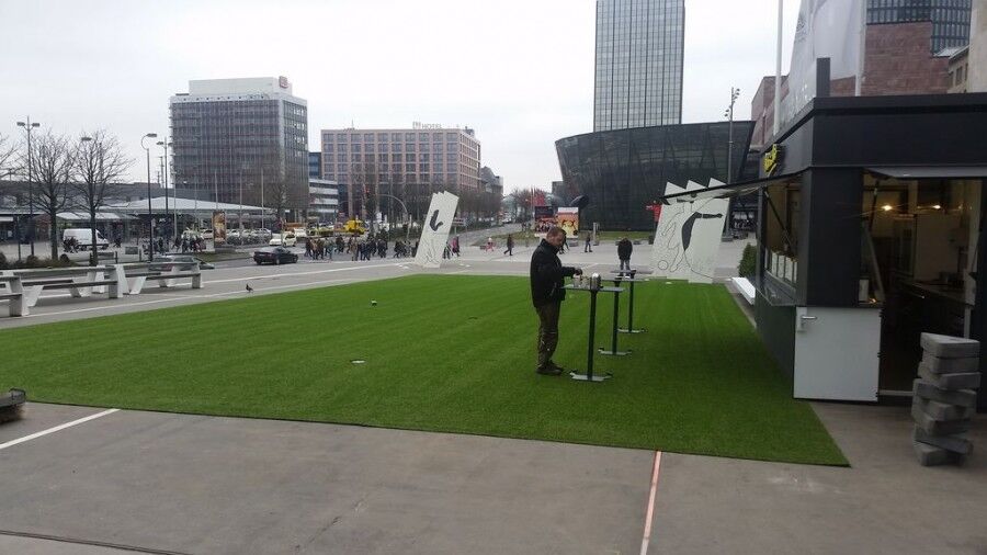 Kunstrasen-Fläche am Fußballmuseum in Dortmund