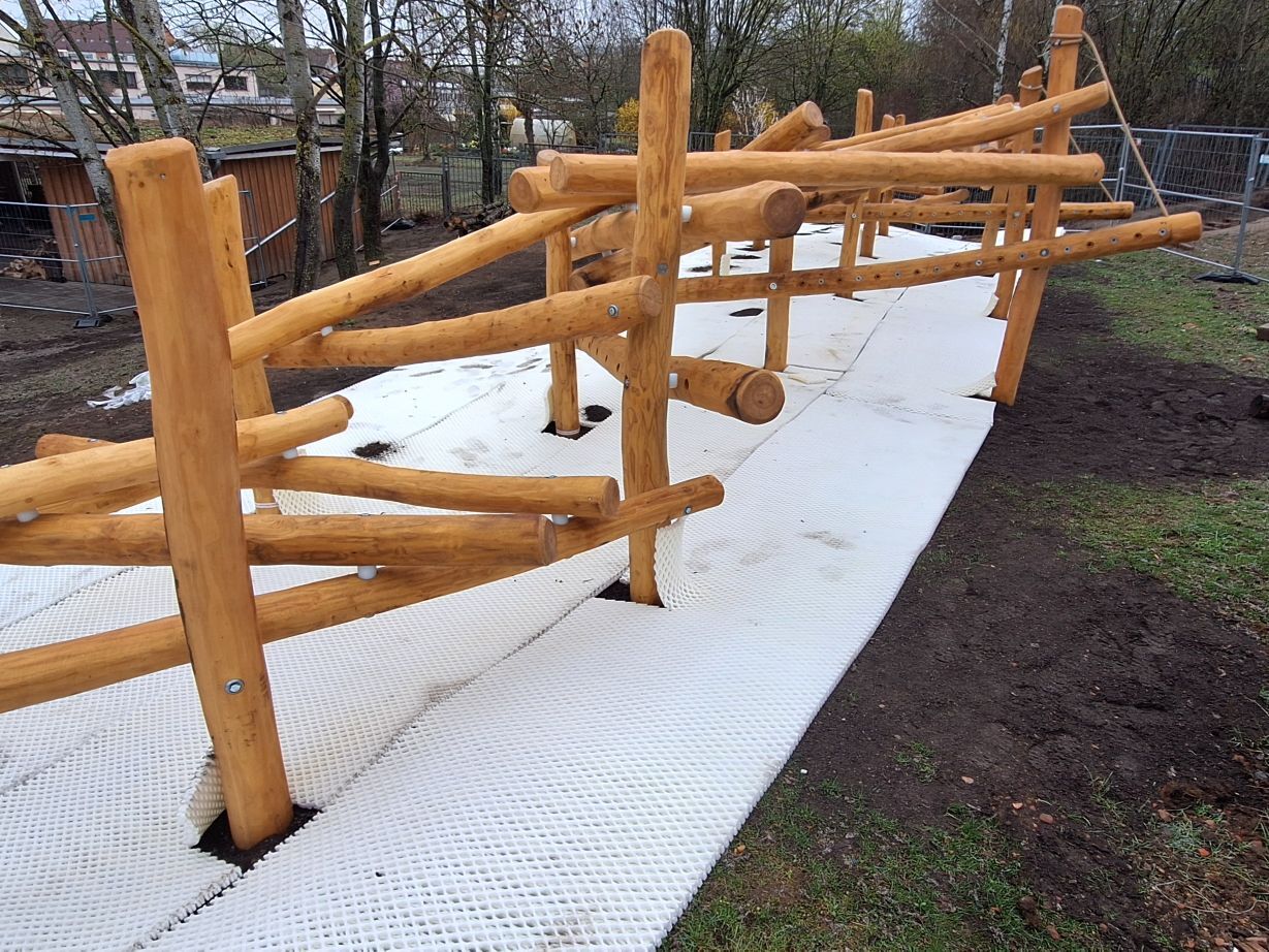 Verlegung des Fallschutzes und Aufbringen der Rasensaat