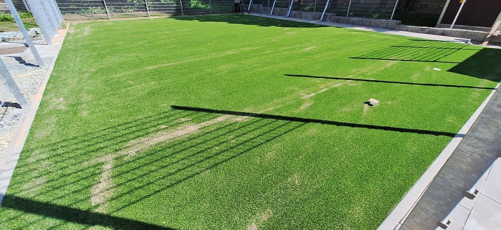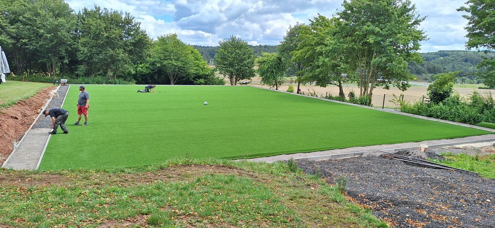 - Spiel-, Sport und Soccer-Kunstrasen im Garten verlegt