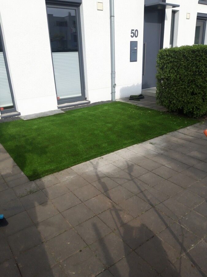 Mai 2020: Klein aber fein - eine Kunstrasen-Verlegung im Vorgarten mit der Sorte Premium-Line 40MM